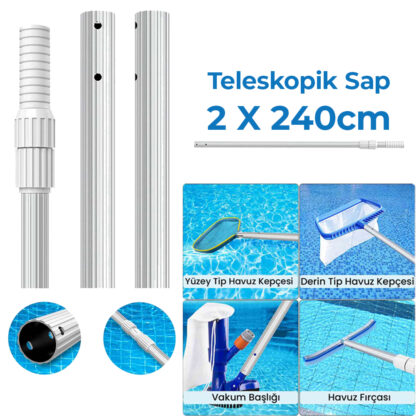 2’li Set Alüminyum Teleskopik Havuz Sapı: 480 cm’ye Dayanıklı Uzanma
