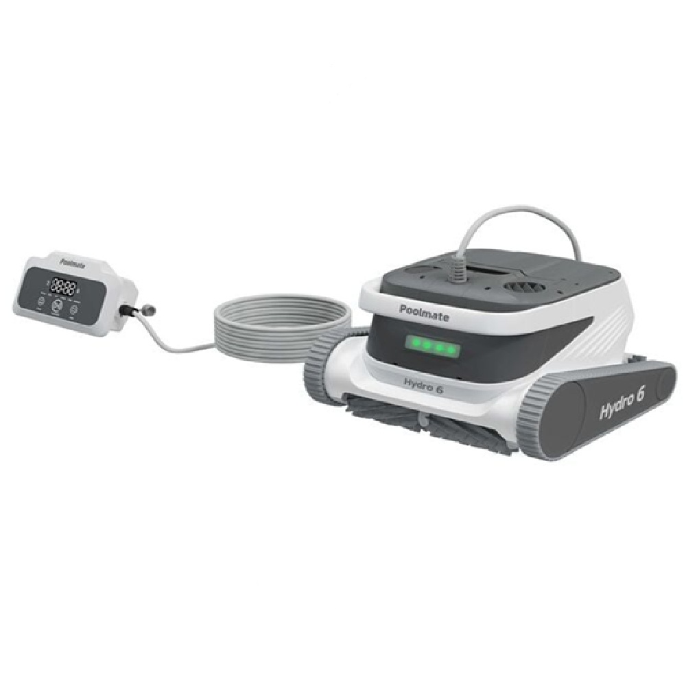 Poolmate Hydro6, 17×10 m ile 19×7 m aralığına kadar havuzlar için geliştirilmiş kablolu profesyonel havuz temizleme robotudur. Çift turbo pompa teknolojisi, yüksek emiş gücü (8.800 GPH), çift aktif fırça yapısı, gelişmiş duvara tırmanma kabiliyeti ve akıllı navigasyon algoritmaları ile yalnızca zemin değil, duvar ve su hattı temizliğini de etkili şekilde gerçekleştirir. 5,6 litrelik geniş filtre haznesi ve 18-25 metre kablo seçenekleriyle büyük havuzlarda daha istikrarlı ve daha kapsamlı bakım sunar.