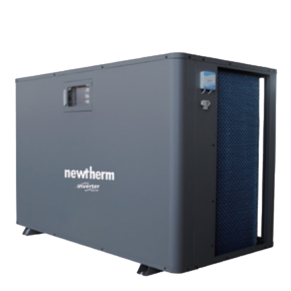 International: Newtherm PoolVario BYC 75 kW Industrial Pool Heat Pump – full inverter, titanium exchanger, R32 refrigerant, COP up to 9.7 for commercial & large pools. Efficient, quiet (<48 dB), direct connection – superior performance for hotels & resorts.