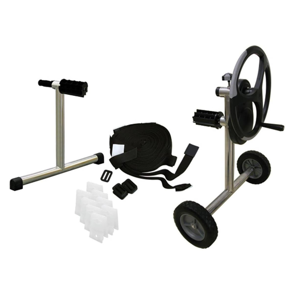 Solar havuz örtü arabası, üzerindeki kolu çevirerek örtüyü silindir üzerine düzgünce sarmanızı sağlar. Tetikli kilit sistemi sarma işlemini sabitler.
